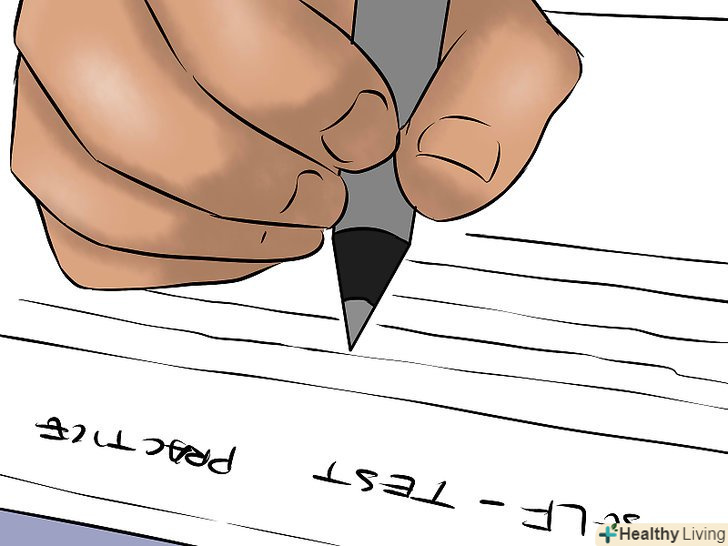 Зробіть практичні завдання для самоперевірки.самоперевірка-це одна з найбільш ефективних стратегій навчання, яку слід використовувати регулярно. Вона змушує наш мозок знаходити інформацію і підсилює нейронні провідні шляхи для поліпшення пам'яті.[14] візьміть свій конспект і складіть питання на основі матеріалу кожної лекції. Складайте питання з вибірковою відповіддю, альтернативні питання, що вимагають короткої відповіді, Питання на заповнення полів і теми творів. Відкладіть їх убік на пару днів, а потім регулярно працюйте з ними в процесі підготовки до іспиту.- Після першого іспиту з предмету Ви нерідко будете знати, якому формату роботи віддає перевагу ваш викладач. Якщо це питання з вибірковою відповіддю, то наступного разу вам краще зосередити свою увагу на таких питаннях.