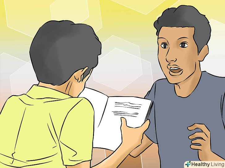 Робота з партнером по навчанню.Навчаючи інших, вам доводиться перефразувати і глибше переробляти інформацію, щоб одягнути її в свої слова, завдяки чому ви самі краще запам'ятовуєте матеріал, перейшовши на новий рівень![15][16] отже, виберіть лекцію і коротко Перегляньте свої конспекти по темі. Розкажіть лекцію своєму партнерові по навчанню і попросіть задати вам питання, спрямовані на конкретизацію висловлених ідей. Потім поміняйтеся ролями, щоб підготуватися з усіх потрібних предметів.- Додатковий плюс підходу криється в тому, що ви майже напевно виявите місця, які спочатку вважали недостатньо важливими для вивчення, але пізніше партнер переконав вас у зворотному. Також це допомагає заповнити прогалини у ваших записах, оскільки партнер по навчанню може повідомити таку інформацію, яку ви не встигли записати.
