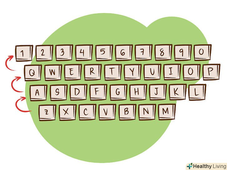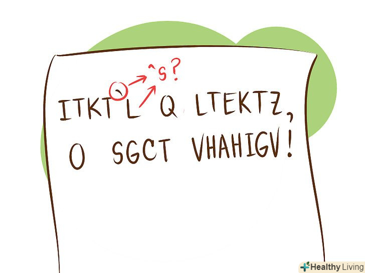 Слідкуйте за шаблонами клавіатури. на основі традиційної розкладки клавіатури типу QWERTY в наш час створюються різні шифри, що працюють за принципом зміщення і заміщення. Букви зміщуються вліво, вправо, вгору і вниз на певну кількість символів, що і дозволяє створити шифр. У разі таких шифрів Треба знати, в який бік були зміщені символи.- Так, змінюючи колонки на одну позицію вгору, " wikihow "перетворюється в"28i8y92".