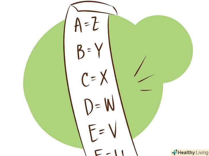 Шифри заміщення.Строго кажучи, шифри заміщення кодують повідомлення, заміщаючи одні букви іншими, згідно заздалегідь визначеному алгоритму. Алгоритм - і є ключ до розгадки шифру, якщо розгадати його, то і розкодувати повідомлення проблеми не складе.- Навіть якщо в коді є цифри, Кирилиця або латиниця, ієрогліфи або незвичайні символи - поки використовуються одні і ті ж типи символів, то ви, ймовірно, працюєте саме з шифром заміщення. Відповідно, вам треба вивчити використовуваний алфавіт і вивести з нього правила заміщення.