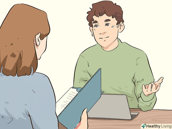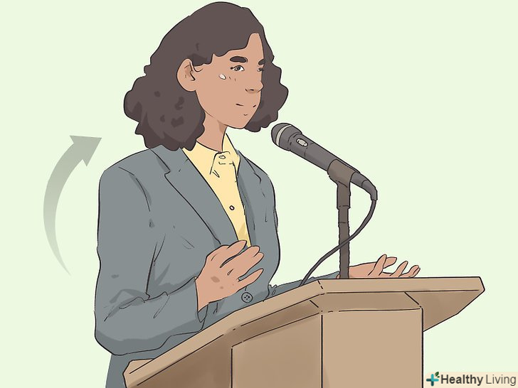 Перестаньте сутулитися. навіть якщо ви трохи нервуєте, правильна постава додасть вам впевненості в собі. Хороша постава також допомагає зберігати дихальні шляхи відкритими, що сприяє більш стійкому диханню.- Всядьтесь зручніше, щоб у вас була можливість тримати спину прямо. Перебуваючи в сидячому положенні, втягніть живіт і вигніть хребет.