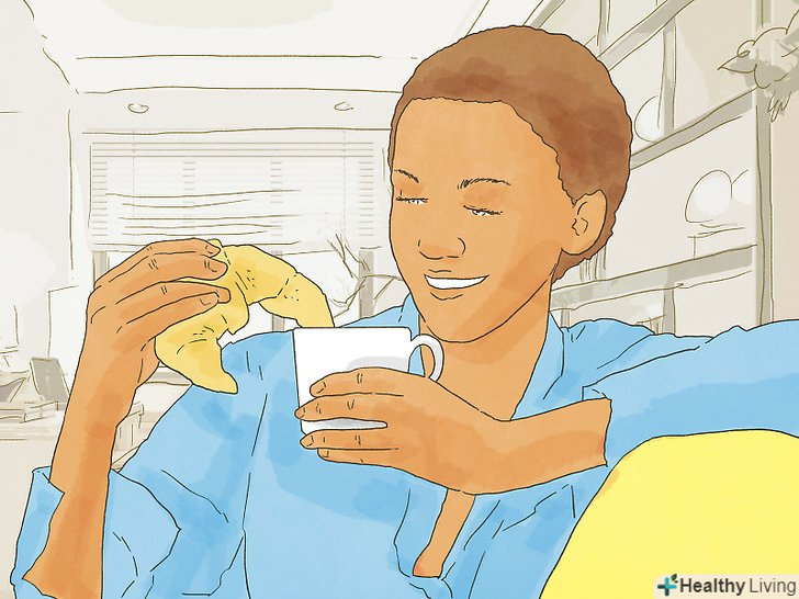 - Якщо ви нагороджуєте себе перекусом, вибирайте щось здорове і додає енергію, наприклад, фрукти, овочі, печиво з цільних зерен, сир, йогурт і мигдаль.[15]