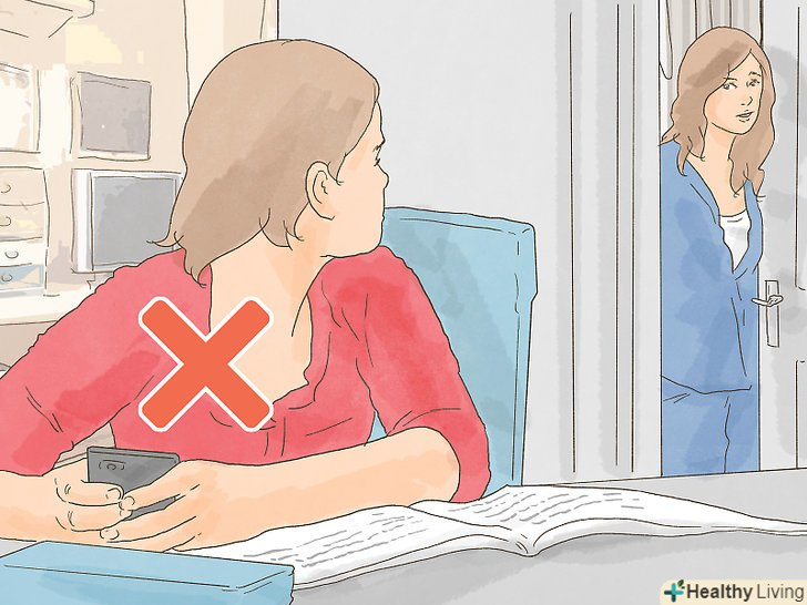 Позбавтеся від усього, що може вас відволікати. Щоб використовувати час для навчання по максимуму, переконайтеся, що поруч немає ніяких відволікаючих факторів, які можуть вас турбувати. Вимкніть телевізор, радіо і комп'ютер, а також відкладіть в сторону телефон, літературу, яку вивчаєте на дозвіллі, і відеоігри. Ви зможете насолоджуватися навчанням, якщо у вас вийде зануритися в неї з головою. [3]- Якщо ви використовуєте комп'ютер в навчальних цілях, спробуйте встановити спеціальний додаток в браузері, наприклад, StayFocusd або Freedom, яке буде фільтрувати відволікаючі сайти під час ваших занять.