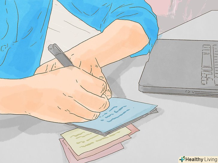 - Розбийте матеріал на частини поменше, щоб уникнути вигорання.вивчення занадто великої кількості інформації за раз може викликати відчуття перевантаженості. Замість цього розділіть конспект на невеликі частини. Кожен раз, освоюючи певну частину, ви будете відчувати почуття задоволеності![16]