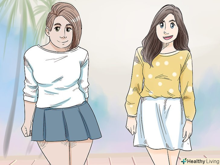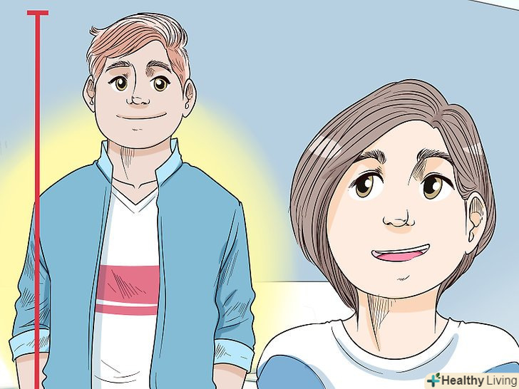 Описуйте комплекцію людини такими термінами, як» худий«,» середньої комплекції «і»великої статури".як правило, вага оцінити набагато важче, ніж зростання. Тому дотримуйтеся досить розпливчастих класифікацій, наприклад: «вона була дуже худий», — або: «він дуже великої статури».[5]- Можливо, вам здасться нетактовним описувати розмір і / або вага людини, тому, якщо ви не зобов'язані давати якомога більш точну оцінку (наприклад, якщо ви не описуєте зниклого безвісти), говорите просто «худий», «середньої статури» та інше.[6]
