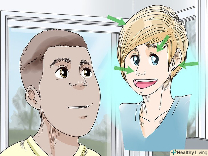 Зверніть увагу на інші риси обличчя, такі, як ніс, вуха і губи.як правило, для опису вух більше підходять терміни:» великі«,» середні «або» маленькі«, — а в разі губ краще сказати:» тонкі«,» середні «і»пухкі". Ніс може бути "коротким», «довгим», «широким», «тонким», «загостреним», «заокругленим», «гачкуватим», "зігнутим" і так далі. Обличчя, в цілому, можна описати як «витягнуте», «кругле» або «плоске».[10]- Якщо ви заповнюєте поліцейський звіт, можна згадати, що у людини були "рум'яні щоки», «мішки під очима»або "подвійне підборіддя". В іншому випадку, проявіть ввічливість і опустіть ці деталі!