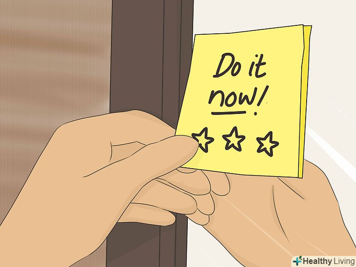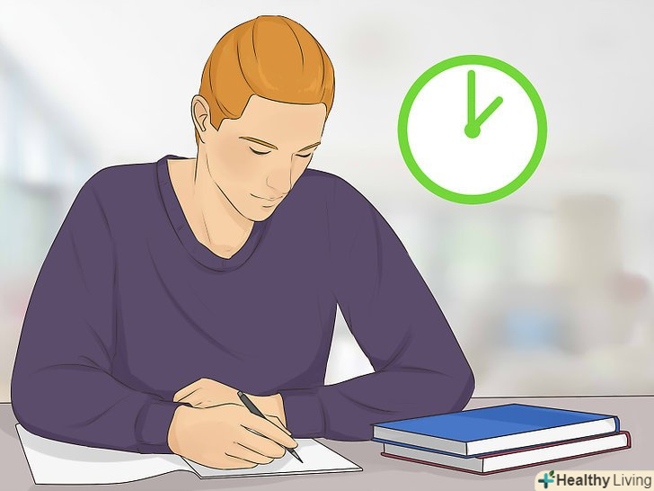 Почніть займатися прямо зараз.у вас напевно є багато причин і відмовок для того, щоб не робити домашню роботу, але якщо вам завжди складно закінчити справи і приступити до роботи, це говорить про те, що ви любите відкладати все на потім. Де взяти час для навчання, якого так не вистачає? Почніть займатися зараз![3]- Чи дійсно вам потрібен цілу годину комп'ютерних ігор після школи для того, щоб розслабитися? Можливо, буде раціональніше відразу ж приступити до роботи, поки нова інформація ще свіжа в голові. Якщо ви відкладете це на кілька годин, вам доведеться заново перечитувати конспект і намагатися повернутися до того, на чому ви зупинилися. Займайтеся, поки ще пам'ятаєте все.
