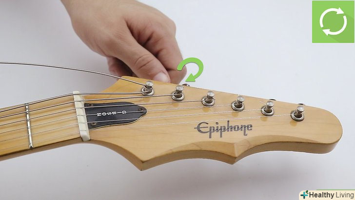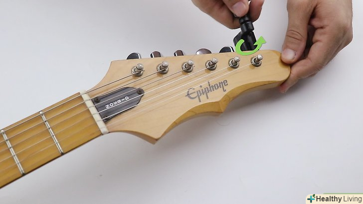 - Скористайтеся тюнером, щоб домогтися правильного натягу. Якщо сумніваєтеся, не затягуйте струну занадто сильно, інакше ризикуєте її порвати.