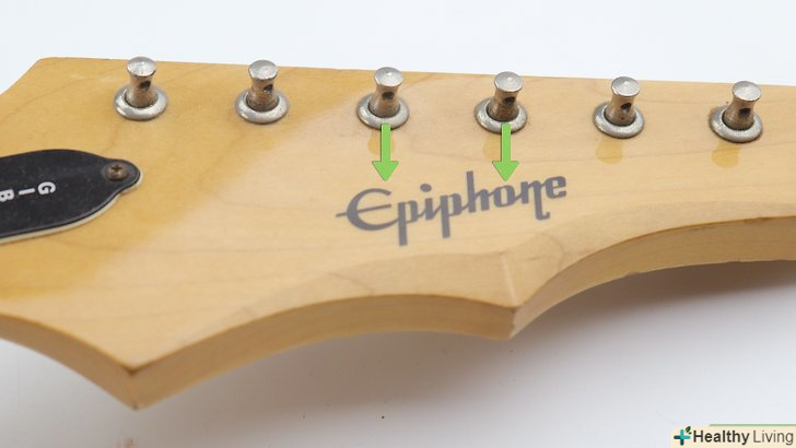 - Кілки ніяк не відзначені, але ви навряд чи заплутаєтеся, якщо почнете замінювати струни в тому ж порядку, в якому ви їх витягували. На більшості електрогітар перша кілка відповідає за 6-ю струну, відповідно своїм струнам відповідають і інші кілки, що йдуть далі до верхівки голови.[8]