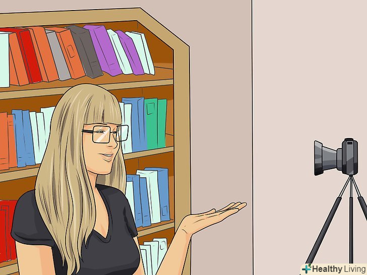Виберіть місце для зйомок.оптимальний знімальний майданчик-це таке місце, в якому ви будете почувати себе комфортно і зможете розташувати все необхідне обладнання. При цьому не забувайте, що краще вибрати місце з мінімальним рівнем навколишнього шуму, щоб сторонні звуки не заглушали вашу мову.- Краще оглянути місце до початку зйомок. Зверніть увагу на рівень шуму в різний час доби і виберіть відповідний фон.