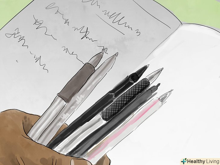 Спробуйте писати ручками різних типів, щоб зрозуміти, які вам подобаються більше.підберіть чорнило, які добре виглядають і підходять вашим цілям. Людям, які вважають за краще щільні гладкі лінії, підійде якісна кулькова або гелева ручка. Якщо ви віддаєте перевагу більш акуратні, тонкі і чіткі лінії, спробуйте писати ручкою-ролером або чорнильною ручкою. Вибір чорнила залежить тільки від особистих переваг, оскільки у всіх видів чорнила є свої плюси і мінуси.[11]- При виборі типу чорнила важливо враховувати, наскільки плавно чорнило надходять на папір, наскільки яскравим виходить колір і яка ймовірність того, що чорнило потечуть або розмажуться.