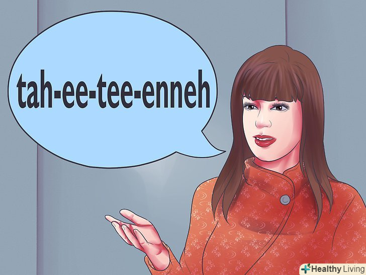 Вимовляєте слово Tahitiennes»tah-ee-tee-enneh".хитрість у вимові "Tahitiennes" це ігнорувати його написання, що може викликати проблеми для носіїв англійської мови. Просто озвучте перші три склади» tah «» ee «і»tee". Останні два трохи складніше-вони вимовляються як "enn-uh«, але без звуку S, навіть якщо в кінці слова є S. Не забувайте фінальні склади» eh «або»uh". Вони повинні бути делікатними, але чутними.- Зверніть увагу, що французький звук H тут дуже легкий або тихий. Слово не має чутного звуку "hee«, як в англійському»Tahitian".