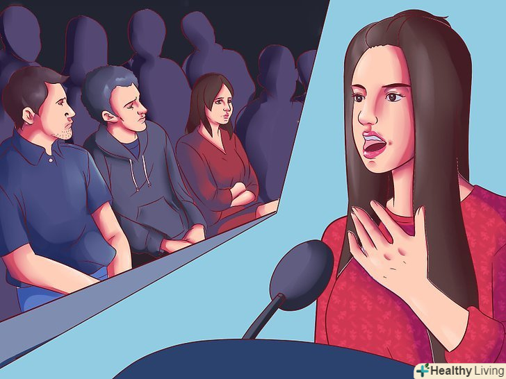 Займіться візуалізацією. просто уявіть успішно виступає себе. Уявіть, як називають ваше прізвище і тему, Як вас просять на сцену, як Ви встаєте, представляєтеся і починаєте розповідати. Уявіть весь свій виступ, від початку і до самого кінця. Виступати по-справжньому після цього буде простіше. Займіться візуалізацією. просто уявіть успішно виступає себе. Уявіть, як називають ваше прізвище і тему, Як вас просять на сцену, як Ви встаєте, представляєтеся і починаєте розповідати. Уявіть весь свій виступ, від початку і до самого кінця. Виступати по-справжньому після цього буде простіше.
