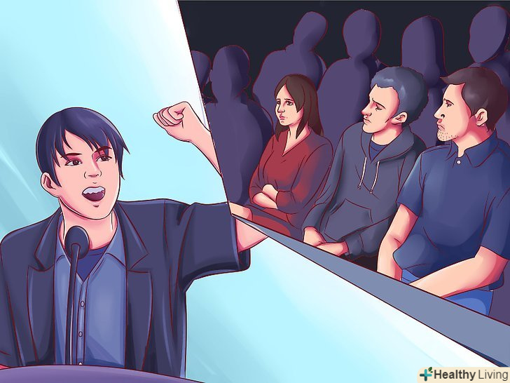 Практикуйтеся на публіці.по можливості, репетируйте перед рідними і друзями. Якщо вам потрібен їх відгук, то поясніть, на що їм слід звертати особливу увагу. Практикуйтеся на публіці.по можливості, репетируйте перед рідними і друзями. Якщо вам потрібен їх відгук, то поясніть, на що їм слід звертати особливу увагу.- Слідкуйте за своїми слухачами. Ніщо так не захоплює аудиторію, як зоровий контакт з виступаючим. Репетируєте виступ? Не забувайте поглядати на тих, хто слухає. Це корисно ще й тому, що вам потрібно навчитися не плутатися в поглядах на аудиторію, на свій план або сценарій, на наочні посібники і так далі. З часом, само собою, ви навчитеся. Це, до слова сказати, інше пояснення того, чому репетиції так важливі.