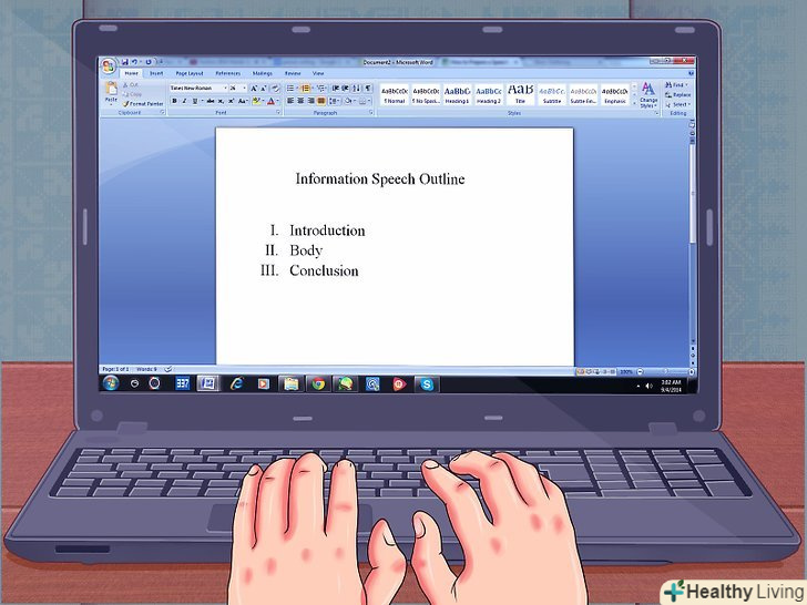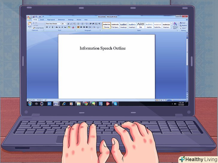 Проведіть широке дослідження теми.інтернет-відмінний спосіб дізнатися про тему свого виступу якомога більше. Втім, не обов'язково обмежуватися ним! Використовуйте бібліотеки, беріть інтерв'ю у фахівців, збирайте якомога більше даних. Чим більше ресурсів для підготовки мови використано, тим переконливіше вона звучить. Проведіть широке дослідження теми.інтернет-відмінний спосіб дізнатися про тему свого виступу якомога більше. Втім, не обов'язково обмежуватися ним! Використовуйте бібліотеки, беріть інтерв'ю у фахівців, збирайте якомога більше даних. Чим більше ресурсів для підготовки мови використано, тим переконливіше вона звучить.