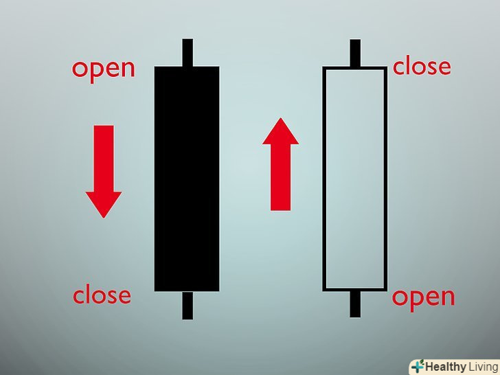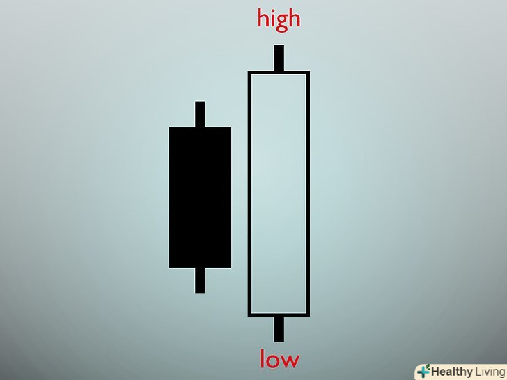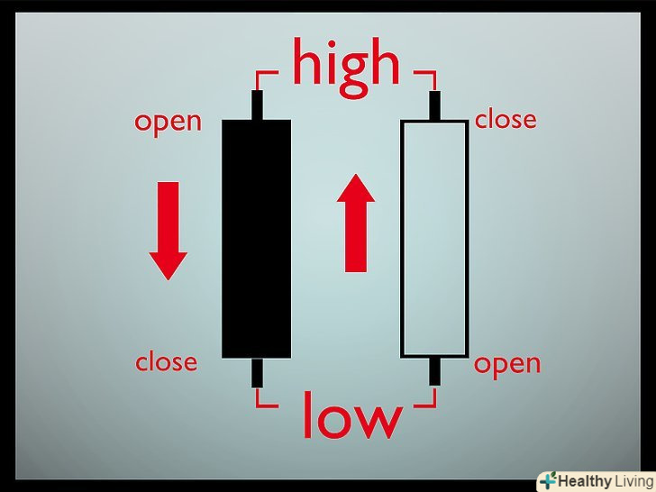 Усвідомте, що свічки показують зв'язок між цінами відкриття, високими, низькими і цінами на момент закриття біржі.це означає, що вони не можуть використовуватися, щоб відображати на діаграмі цінні папери, у яких є тільки ціни на момент закриття біржі. Інтерпретація свічкових діаграм заснована на аналізі моделей. Торговці валютою в основному використовують зв'язок максимальних і мінімальних цін в котируваннях за день торгівлі на даний період часу. Однак діаграми свічника пропонують помітні моделі, які можуть використовуватися для передбачення динаміки цін.- Вивчіть моделі.існує два типи свічок: бичача свічка і ведмежа свічка: