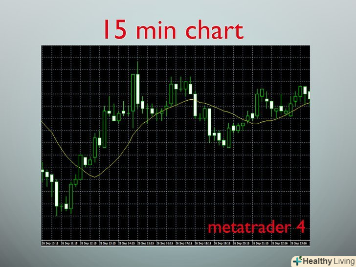 Шукайте певні структури діаграми.просунуті торговці та інші шукають певні візуальні сигнали в валютній діаграмі, щоб спробувати передбачити, якою буде ціна в майбутньому.- Навчіться читати свічкову діаграму, щоб використовувати в своїх інтересах цей просунутий фінансовий ресурс. Діаграми свічок показують діапазон показників для певного торгового дня, де верхня і нижня межа свічки ілюструють динаміку цін. Багато валютних діаграм включають діаграму свічок, особливо онлайн, і читаючи ці діаграми правильно, ви зможете дізнатися набагато більше про ціну, ніж, то, як вона змінилася протягом періоду часу.
