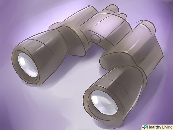 Користуйтеся біноклем тільки в разі необхідності.він поліпшить сприйняття предметів. П'ятдесятиміліметровий бінокль допоможе вам побачити яскравість до + 10 за шкалою, про яку говорилося раніше.[3] однак, за допомогою одного тільки бінокля знайти станцію на небі буде досить важко, так як через бінокль видно не все небо. Краще знайти станцію, не використовуючи бінокль, потім просто підставити бінокль до очей, коли ви її виявите.- За допомогою телескопа можна знайти навіть дуже непомітні об'єкти на небі, але знайти космічну станцію практично неможливо, однак це можна зробити, якщо точно виміряти напрямок телескопа. Використовуйте його за таким же принципом, як і бінокль, але якщо ви точно не впевнені, як правильно користуватися телескопом, то в цьому випадку виберіть час, коли станція буде видно протягом декількох хвилин.
