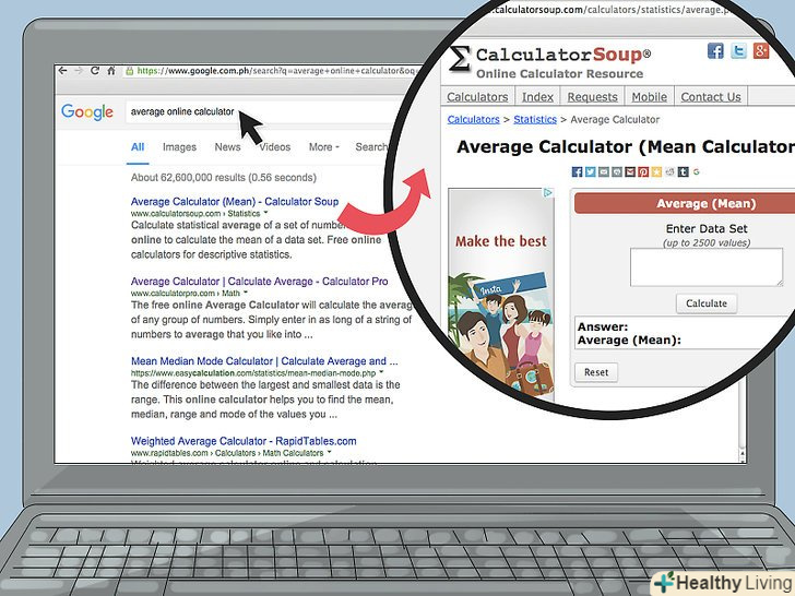 Скористайтеся онлайн-калькулятором.в Інтернеті є сервіси, які спрощують обчислення середнього значення. Такі сервіси забезпечені онлайн-калькуляторами, в які вводиться набір чисел.[9]- Звичайно, можна користуватися олівцем, папером і звичайним калькулятором. Як тільки ви зрозумієте, як працює формула для обчислення середнього значення, ви з легкістю визначите, чим користуватися в процесі обчислень.