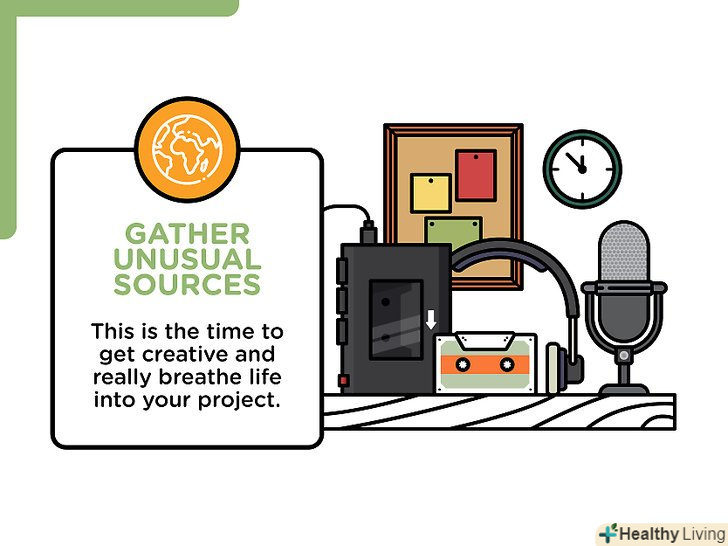 Збирайте незвичайні джерела.до цього моменту у вас повинно бути записано (і систематизовано за джерелами) більше інформації, ніж ви зможете використовувати в роботі. Настав час проявити креативність і вдихнути життя в ваш проект. Відвідайте музеї та історичні спільноти — там може бути інформація, яку ви більше ніде не знайдете. Запитайте у користуються заслуженою довірою професорів, які джерела краще використовувати в якості первинних. Зателефонуйте лідерам і професіоналам в області ваших досліджень і дізнайтеся їх думку.- Можливо, має сенс "вийти в поле" і поговорити зі звичайними людьми, дізнатися їх думку. Це не завжди доречно (або вітається) в науково-дослідних роботах, але в деяких випадках такий крок може допомогти вам відкрити нову цікаву точку зору на ваш проект.