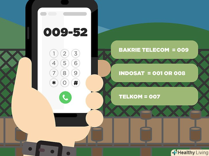 Зателефонуйте до Мексики з Індонезії.при дзвінку з Індонезії вихідний код залежить від оператора телефонного зв'язку.- При дзвінку в Мексику з Індонезії використовуйте стандартну форму ІК-52-xxx-xxx-xxxx, де «ІК» це «вихідний код».