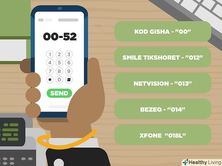 Зателефонуйте до Мексики з Ізраїлю.Ізраїль - ще одна країна, в якій використовується кілька вихідних кодів, кожен з яких залежить від оператора телефонного зв'язку.- При дзвінку в Мексику з Ізраїлю використовуйте стандартну форму ІК-52-xxx-xxx-xxxx, де «ІК» це «вихідний код».