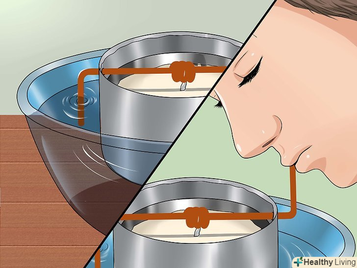 Опустіть банку в миску з водою, при цьому кінці трубки повинні зануритися.Ваша "човен" повинна надійно триматися на поверхні. Якщо кінці трубки недостатньо занурені в воду, спробуйте трохи погіршити банку, але ні в якому разі не втопите її.