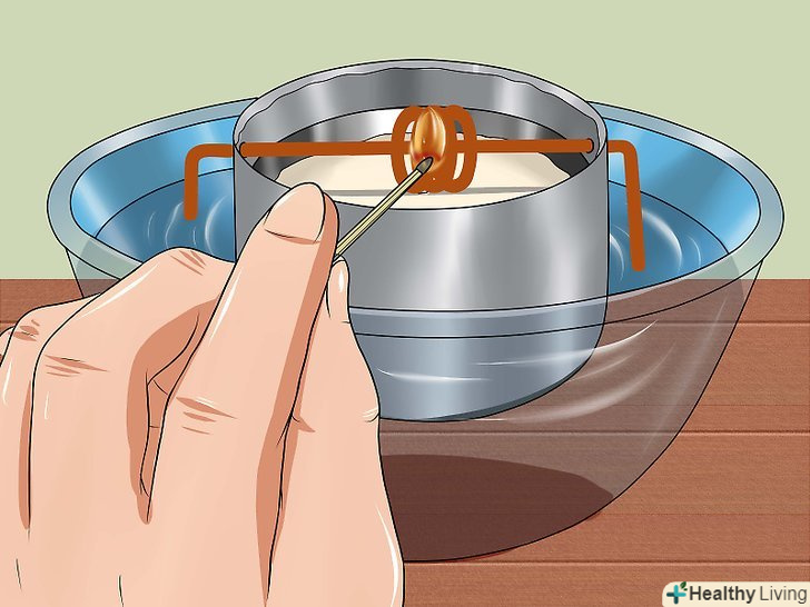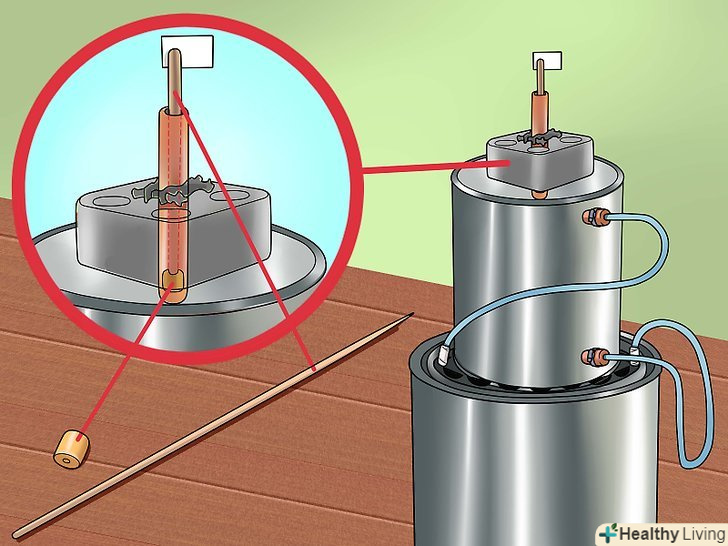 Вставте шпажку в дюбель. візьміть звичайну дерев'яну шпажку для барбекю і вставте її в один кінець порожнистого дерев'яного дюбеля довжиною 1,5 см і діаметром 0,95 см. вставте дюбель зі шпажкою в мідну трубку всередині металевої сполучної коробки таким чином, щоб шпажка була спрямована вгору.- Під час роботи нашого двигуна шпажка і дюбель будуть діяти як "поршень". Щоб руху поршня було краще видно, можна прикріпити до нього невеликий паперовий "прапорець".