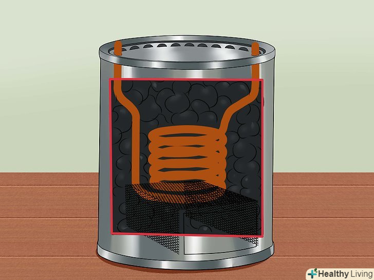 Помістіть змійовик і деревне вугілля в банку.помістіть змійовик на сітчасту платформу. Заповніть простір навколо і всередині змійовика деревним вугіллям. Щільно закрийте кришку.