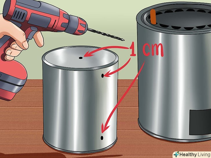Зробіть півколо з отворів по периметру кришки.згодом ви будете спалювати в банку вугілля, щоб забезпечити паровий двигун теплом. При нестачі кисню вугілля буде погано горіти. Щоб в банку була необхідна вентиляція, просвердлите або пробийте в кришці кілька отворів, які утворюють півколо уздовж країв.- В ідеалі діаметр вентиляційних отворів повинен бути близько 1 см.