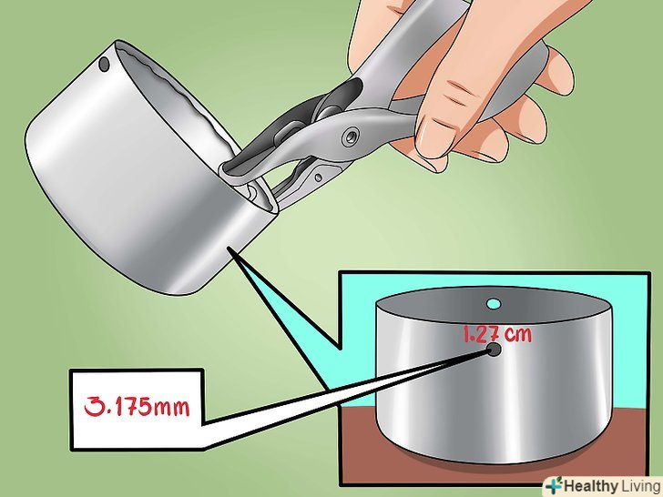 Виконайте два отвори в протилежних сторонах банки, відступивши 1,3 см від верху.для виконання отворів підійде як паперовий дирокол, так і цвях з молотком. Вам будуть потрібні отвори діаметром трохи більше трьох міліметрів.