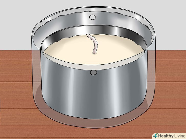 Розмістіть по центру банки маленьку гріючу свічку.Скомкайте фольгу і покладіть її під низ і навколо свічки, щоб вона не рухалася. Такі свічки зазвичай йдуть в спеціальних підставках, тому віск не повинен плавитися і витікати в алюмінієву банку.