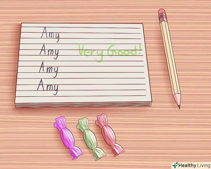 Похваліть дитину, коли він напише ім'я правильно кілька разів.Дайте йому трохи цукерок. Скажіть, що він заслужив їх. Відпустіть дитину побігати і пограти.
