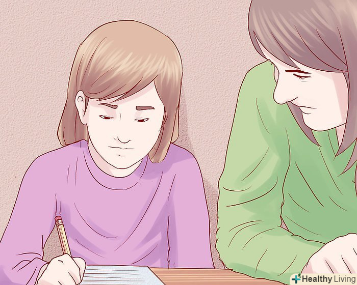 Посадіть дитину за стіл і сядьте поруч з ним / нею.