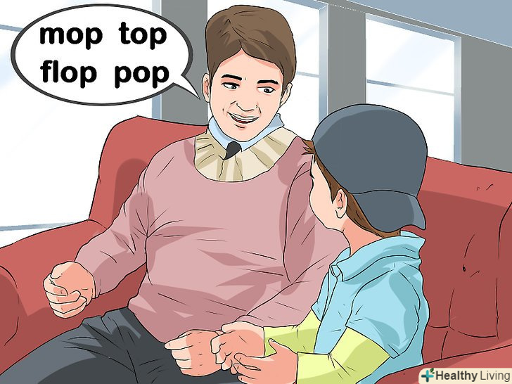 Вчіть з дитиною вірші. вірші навчають фонетичному сприйняттю і розпізнаванню букв, на додаток до самих основних слів. Читайте дитячі вірші своїй дитині, і в кінцевому підсумку Зробіть список легких для читання Рим, наприклад «»топ, хлоп, стоп". Дитина почне бачити структуру звуків, які виробляються при певних поєднаннях букв — в нашому випадку це поєднання «оп».
