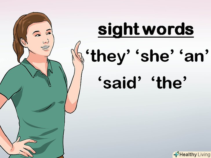 Нехай дитина практикується в розшифровці.класична, відома як розпізнавання слів, розшифровка — коли дитина читає слово по окремих буквах, а не намагається відразу прочитати слово цілком. Читання розбивається на дві основні частини: розшифровка/читання слова, і розуміння його сенсу. Не чекайте, що ваша дитина відразу дізнається і зрозуміє значення слова; змусьте його зосередитися на розшифровці і розпізнаванні частин слова.- Поки не використовуйте цілі оповідання або книги; нехай ваша дитина вчиться на списку слів, фраз або простому оповіданні (не фокусуючись на сюжеті). Це чудовий момент для використання віршів.