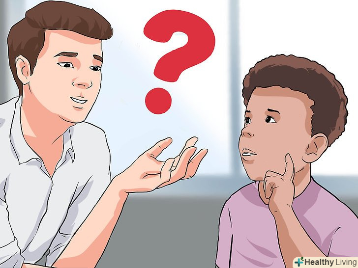 Задавайте питання про книжку.раніше ви читали книги дитині і обговорювали їх разом. Тепер кожен раз, як ваша дитина стане читати, задавайте йому питання про те, що він тільки що прочитав. Спочатку йому буде важко мислити і аналізувати значення слів, дії персонажів і розвиток сюжету, але з часом він розвине необхідні навички, щоб відповідати на питання.- Складіть список питань, який зможе прочитати ваша дитина. Здатність прочитати і зрозуміти задані питання, майже також корисна, як якщо б він сам відповідав на питання.
