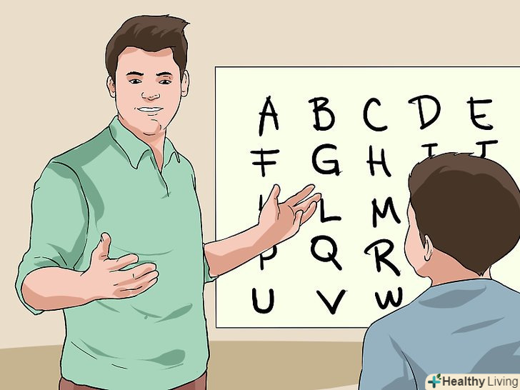 Розвивайте фонетичне сприйняття.Одним з найважливіших кроків у навчанні читання є асоціювання вимовного звуку і букви, або пари букв. Цей процес відомий як фонетичне сприйняття. Не забувайте, що іноді одна буква відповідає двом звукам (наприклад, я, Ю), а іноді дві букви утворюють один звук (згодна плюс Ь).- Концентруйтеся на окремій букві/складі/звуці за один раз. Уникайте плутанини і закладіть міцний фундамент, працюючи в стійкому темпі з усіма звуками мови.