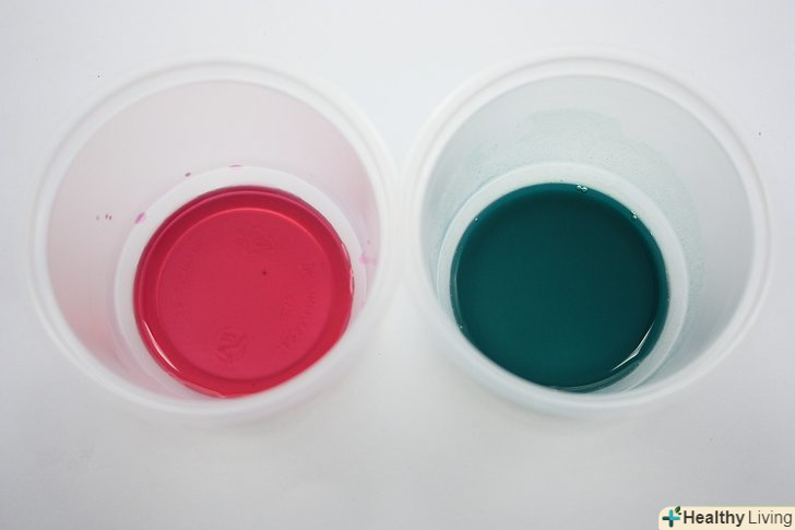 В один стакан додайте чайну ложку білого оцту, а в інший - чайну ложку соди. оцет містить кислоту, тому вода стане рожевою. Сода-це луг, тому сода зробить воду блакитною або темно-синьою. Настав час перевірити дощову воду.