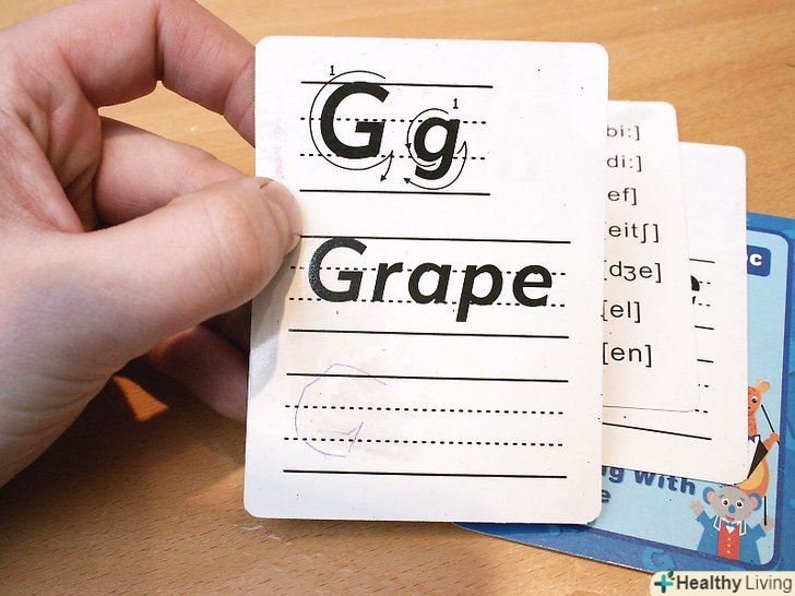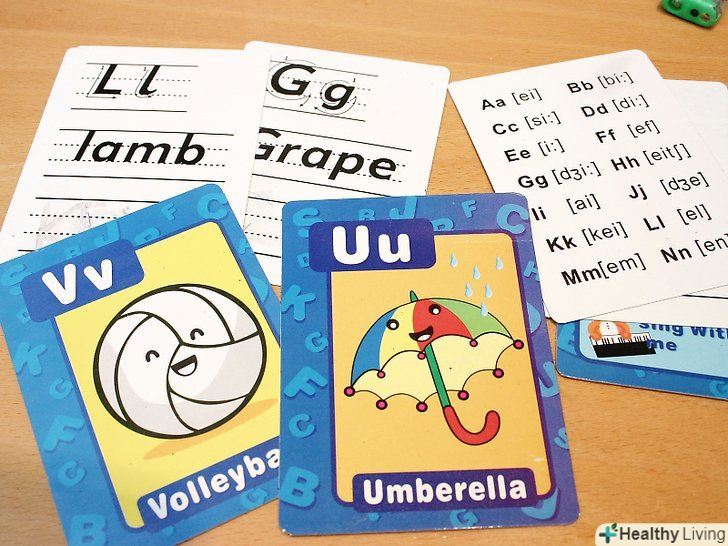 Навчайте дітей звукам, які відповідають буквам алфавіту (наприклад, «б» читається як «бе», а звучить як «б»). переконайтеся, що вони запам'ятали всі звуки.