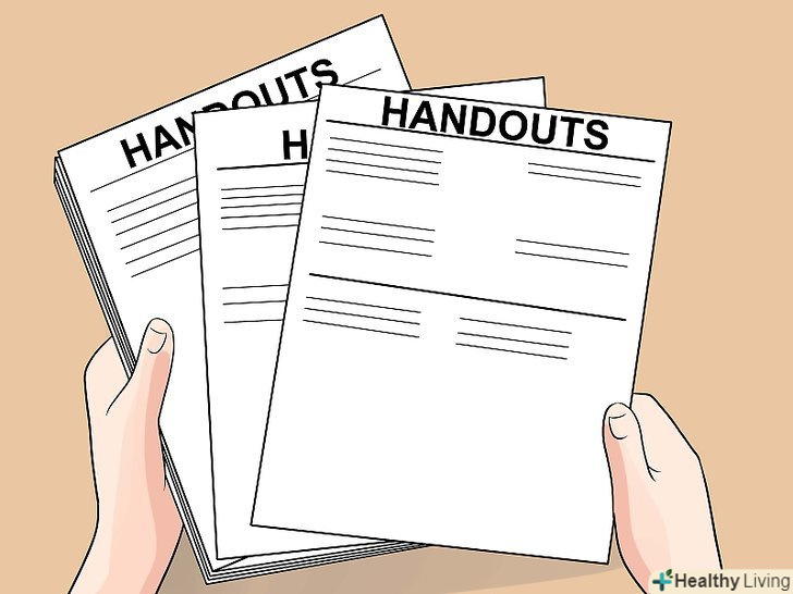 Забезпечте дитину роздатковим матеріалом.у дітей з дислексією бувають труднощі із запам'ятовуванням, тому роздрукований матеріал дозволить краще засвоювати інформацію, особливо якщо лекція Довга.[18] учневі буде простіше стежити за темою заняття, робити позначки, і він завжди буде знати, чого очікувати далі.- Щоб підкреслити важливі моменти, використовуйте візуальні підказки: зірочки, мітки та інші знаки.