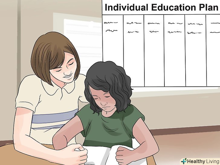 Спробуйте розробити індивідуальний план навчання.це детальний план, який описує потреби дитини, дає рекомендації по системі навчання і визначає необхідні зміни в навчальній програмі. [14] такий план-це документ, в підготовці якого беруть участь батьки, вчителі, психотерапевти і співробітники школи, І він дозволяє врахувати всі потреби учня.- Процес створення плану навчання складний, однак це того варте. Якщо у вашої дитини дислексія, вам слід обговорити це питання з ким-небудь із співробітників школи. Якщо ви-вчитель, розкажіть батькам про плюси такого плану.