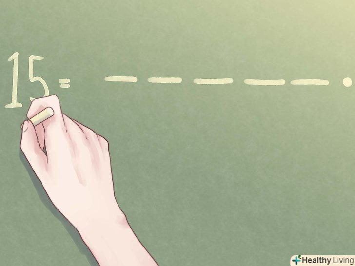 Рисочки і точки.Покажіть дітям, що замість чисел можна написати рисочки і точки: рисочки для десятих і точки для одиниць. Покажіть як приклад, що число 15 складається з однієї рисочки і п'яти точок.