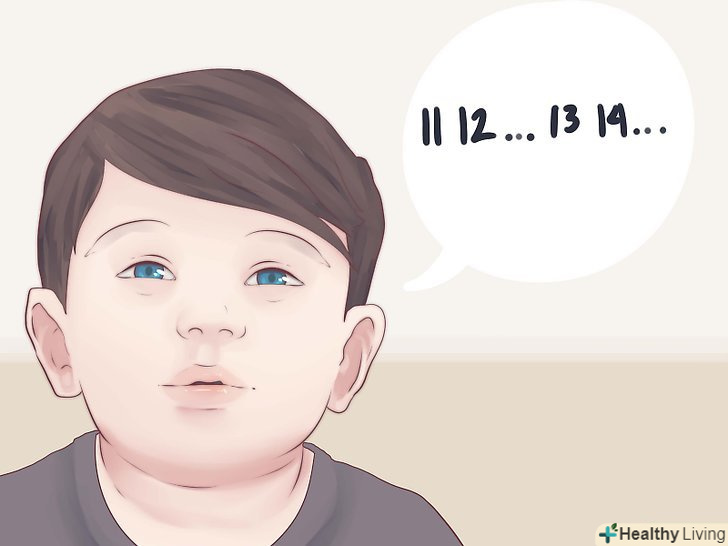 Познайомте дітей з числом 20.діти легко можуть запам'ятати числа до 20 і перерахувати їх. Допоможіть їм запам'ятати числа, додавайте за раз 2 числа, наприклад від 11 до 12, потім почніть спочатку і до 14 і так далі.- Зауважимо, що навчити дітей рахувати і роз'яснити їм значення чисел не одне і те ж. Якщо ви вчите дітей рахувати, паралельно слід пояснювати їм поняття чисел, для чого вони потрібні і т. д.