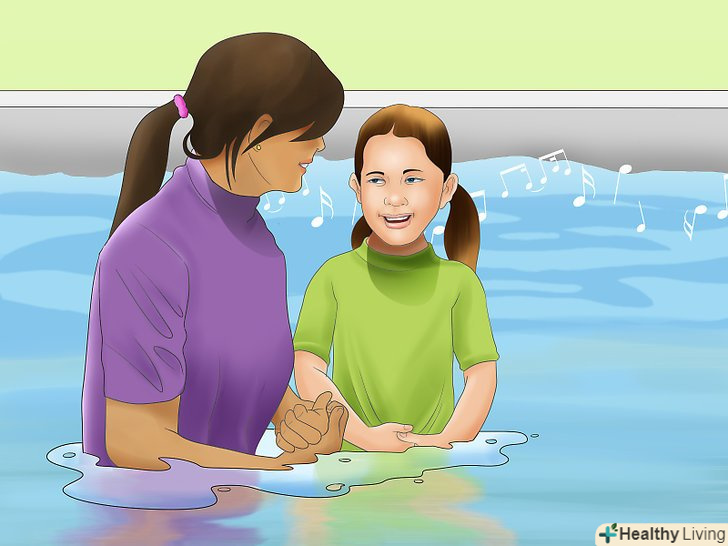 Створіть рутинні процедури для кожного уроку.кожне заняття повинно включати в себе свого роду розминку і затримку. Дії повинні бути однаковими для всіх уроків і можуть зводитися всього лише до плескання водою, базікання ногами сидячи на сходинці сходів басейну або пускання бульбашок у воді. Рутина допоможе заспокоїти нерви дитини і підняти його впевненість для успішного виконання завдань.[19][20]- Багато навчальні програми, призначені для дітей з особливими потребами, включають в основний курс навчання подібні рутинні дії, наприклад, це може бути правило починати і закінчувати кожен урок пісенькою.
