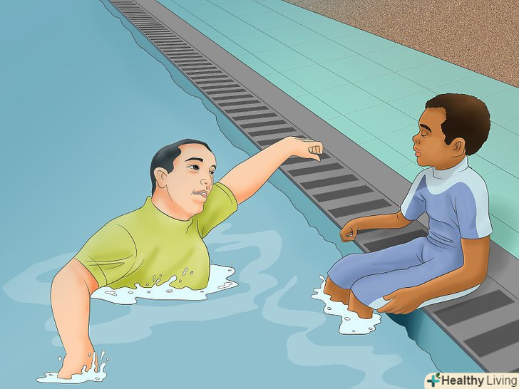 - Також ви самі можете використовувати цю можливість, щоб вказати дитині на належну поведінку в басейні, включаючи те, як слід обходити його по краю, як заходити в воду і вибиратися з неї.