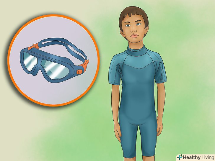 Одягніть дитину в гідрокостюм.багато аутичних дітей відчувають себе комфортніше у воді в гідрокостюмі, а не в класичних плавках і купальниках. Гідрокостюм забезпечує тепло і облягає тіло, завдяки чому дитина відчуває себе в більшій безпеці. [12]- Також дитині може бути комфортніше в гідрокостюмі вже тільки тому, що той більше схожий на звичайний одяг, тоді як плавки і купальники швидше нагадують нижню білизну.