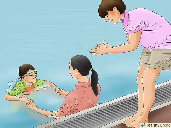 Дозвольте дитині поспостерігати за уроками плавання.багатьом аутичним дітям корисно мати можливість поспостерігати за ходом уроків плавання, перш ніж вони самі приступлять до них.[9]- Повідомте адміністрації басейну про те, що ви хочете, щоб дитина поспостерігав за уроками плавання. Так у вашої дитини з'явиться можливість заздалегідь познайомитися зі своїм майбутнім інструктором і краще дізнатися, що буде відбуватися на заняттях.