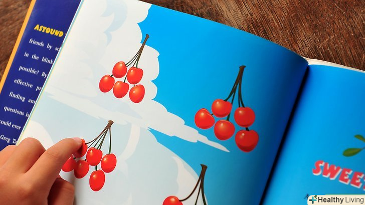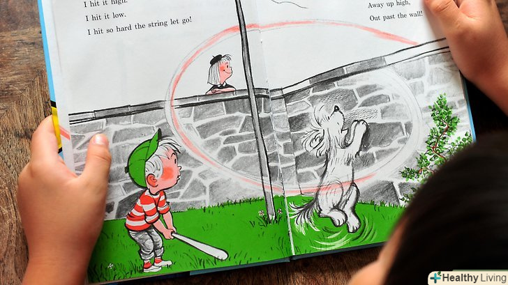 Дивіться на картинки.книги з картинками - це відмінний спосіб поповнити словниковий запас дитини, а так само допомогти йому розібратися в змісті історії. Перед початком читання, просто перегорніть картинки в книзі і прокоментуйте їх дитині. Покажіть дитині, як знайти підказки в тексті, щоб зрозуміти, як його прочитати.[7]- Постарайтеся задавати питання, відповіді на які діти можуть знайти на картинках. Наприклад, якщо ви бачите кольорове слово, запропонуйте дитині здогадатися за кольором, що це за слово.
