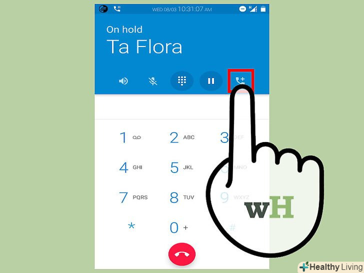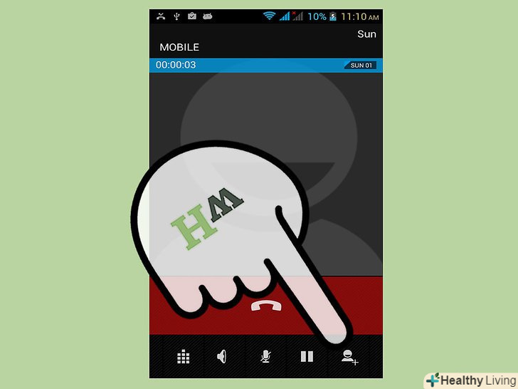 Зробіть другий виклик.виберіть іншого друга в розділі "Контакти" або»вибране". Номер також можна ввести на клавіатурі. Коли другий абонент відповість на дзвінок, ваш перший дзвінок автоматично перейде в режим очікування.[11]